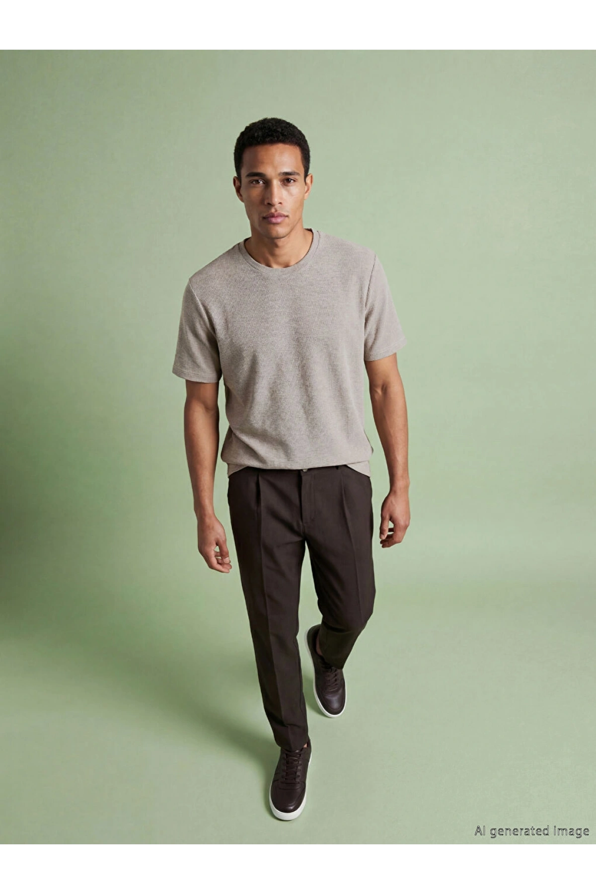 LCWAIKIKI Classic Kahverengi Bisiklet Yaka Erkek Tişört