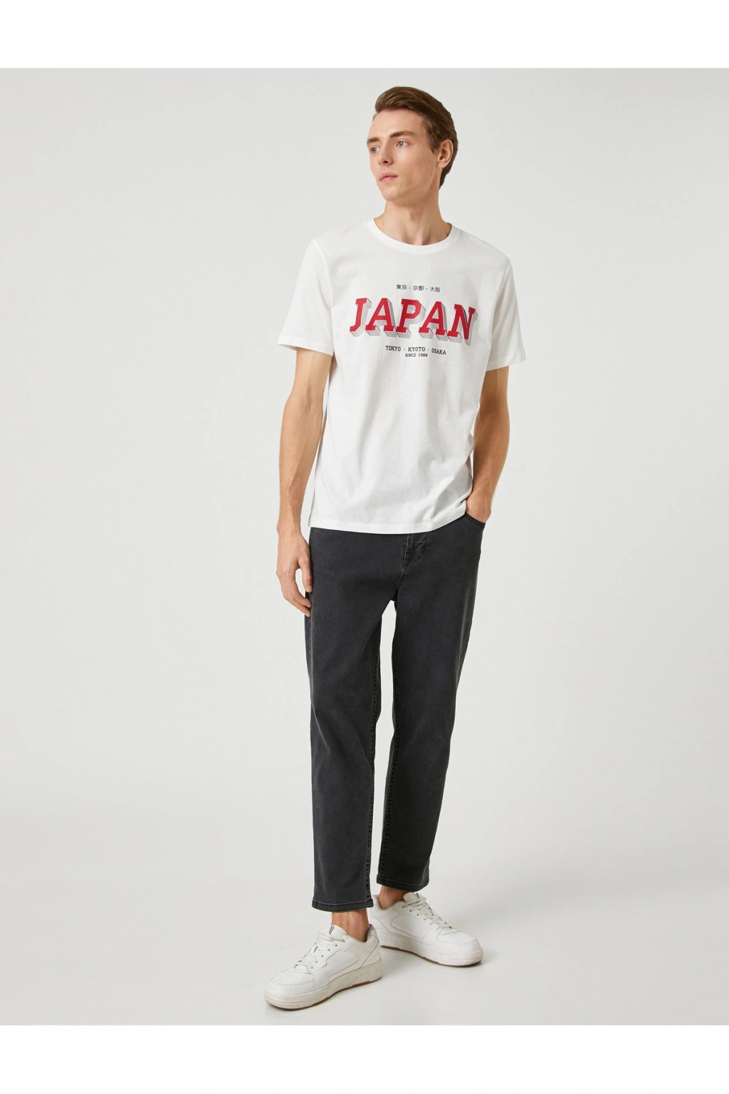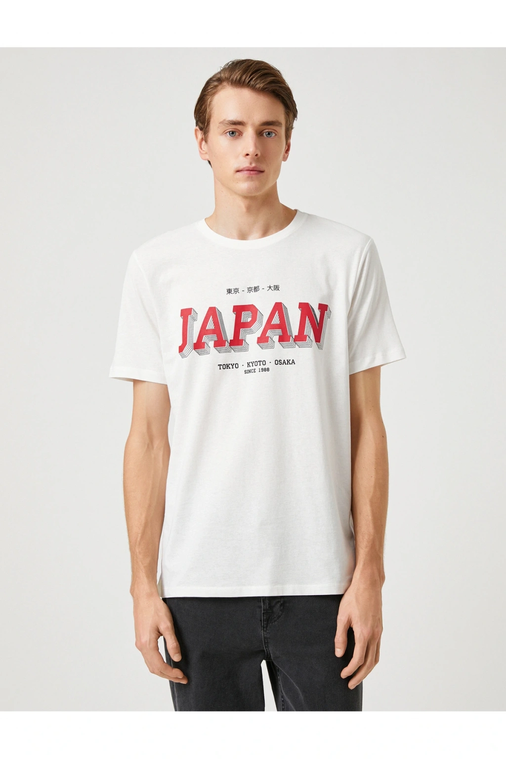 Tüm mevsimlerin vazgeçilmez parçası olan Koton erkek tişört modellerine mutlaka göz atın! Bisiklet yaka, Uzakdoğu baskılı tişört stil sahibi erkekler için en ideal parça.; | Model Boy: 190 | Model Kalça: 93 | Model Üst: 81 | Model Bel: M | Model Göğüs: 96 | Model Jean: 32/32