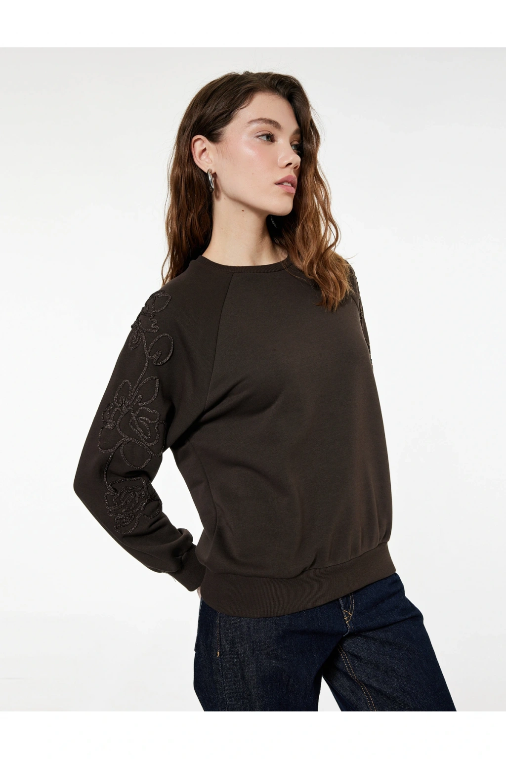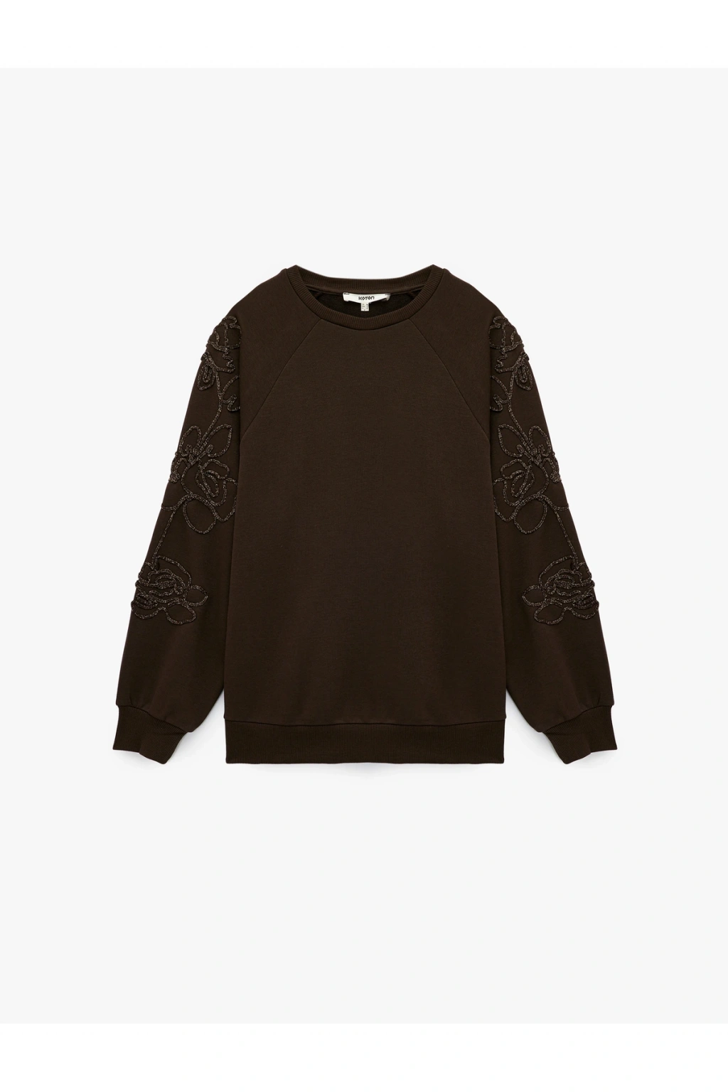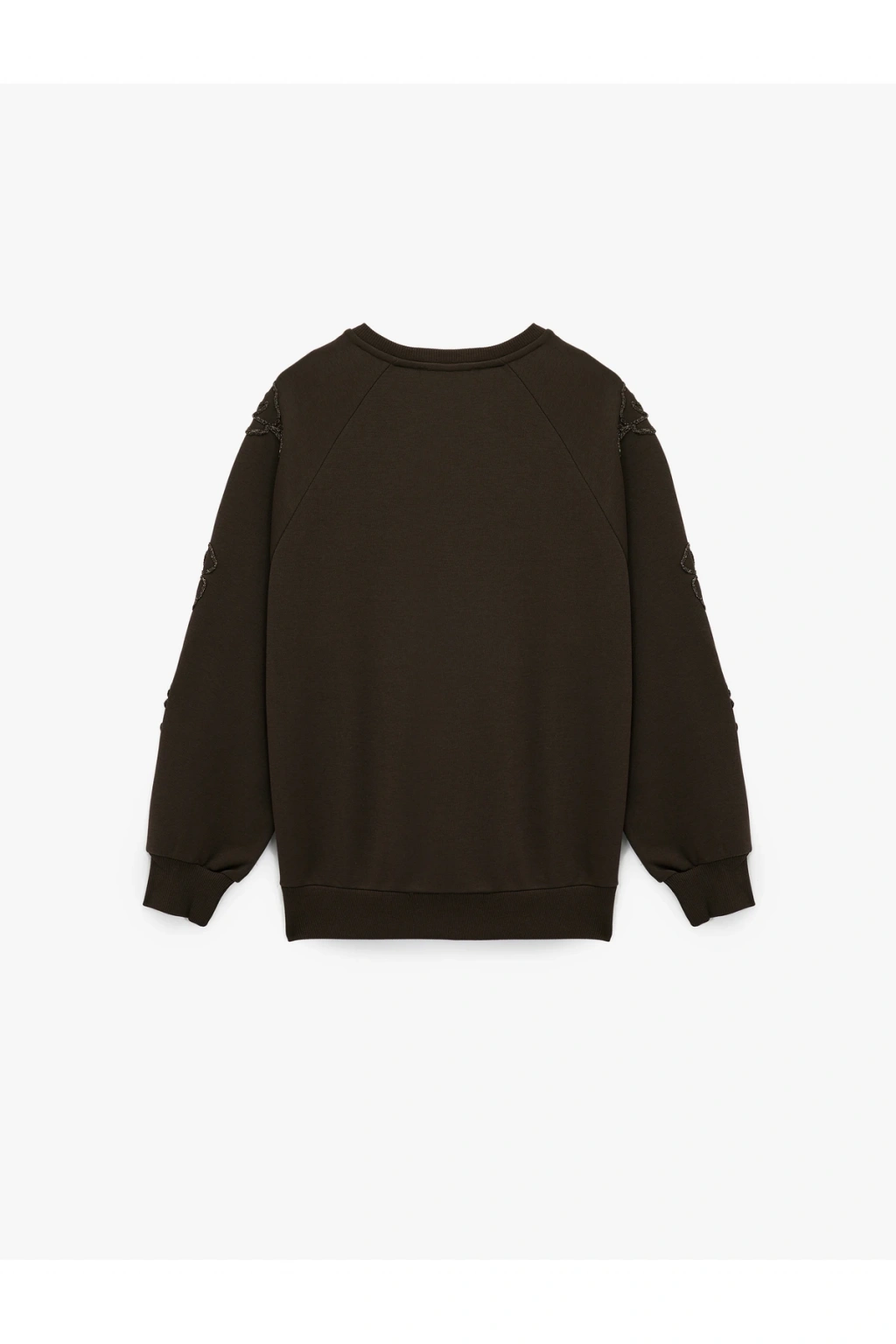 Uzun Kollu Bisiklet Yaka Çiçekli Boncuk Nakış Detaylı Oversize Sweatshirt