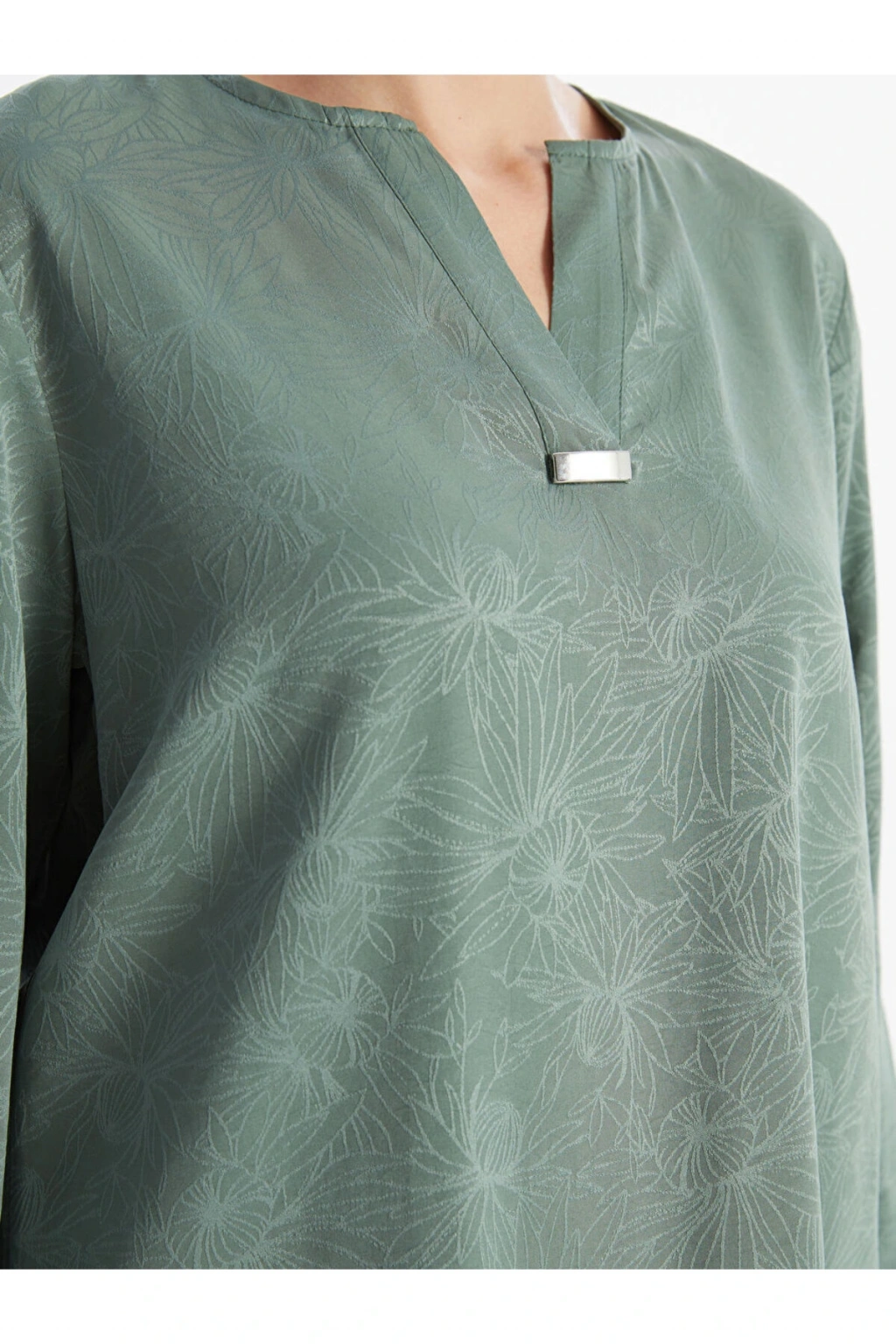 Ürün Açıklaması: V yaka çiçekli uzun kollu kadın bluz, yumuşak penye kumaştan üretilmiştir, bu sayede hem nefes alabilir hem de son derece konforlu bir kullanım sunar.; Bluzun canlı çiçek desenleri, göz alıcı bir görünüm sunar.; Manken Bilgisi: Göğüs: 85 cm Bel: 64 cm Basen: 90 cm Boy: 175 cm Manken 40 beden ürün giyiyor.; Ürün İçeriği ve Özellikleri: Ürün İçeriği: Ana Kumaş: %88 VİSKOZ %12 Poliamid Ürün Özellikleri: Marka: LCW Grace Ürün Tip: Bluz Cinsiyet: Kadın Desen: Çiçekli Kol Boyu: Uzun Kollu Kalıp: Standart & Regular Kalınlık: İnce Yaka: V Yaka