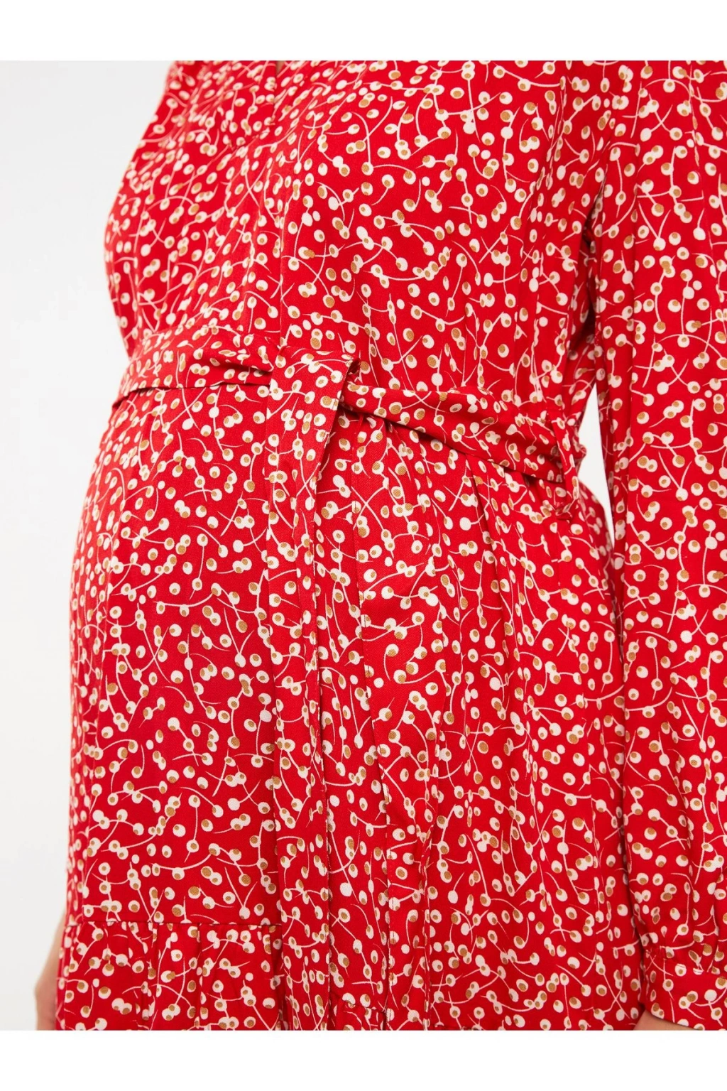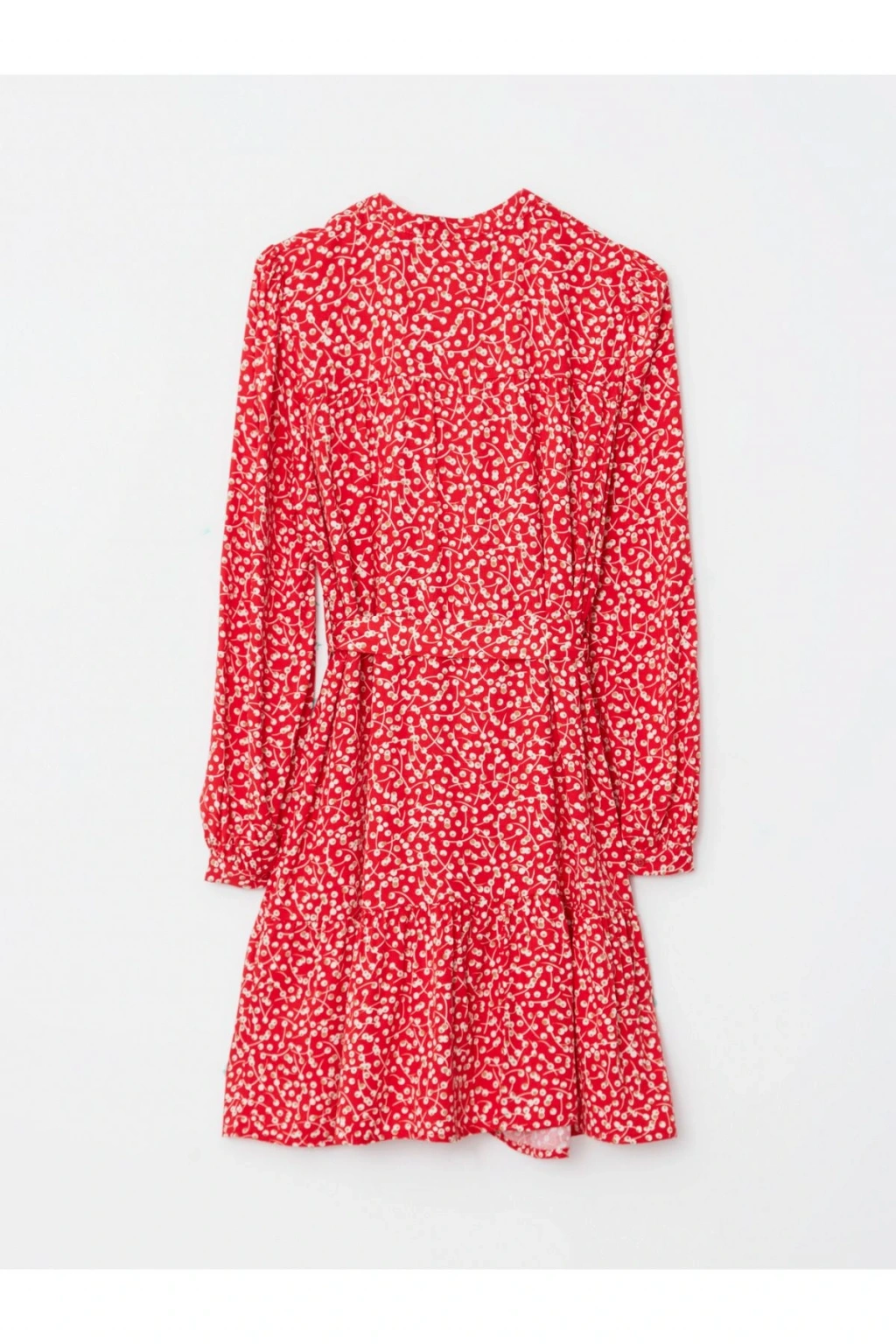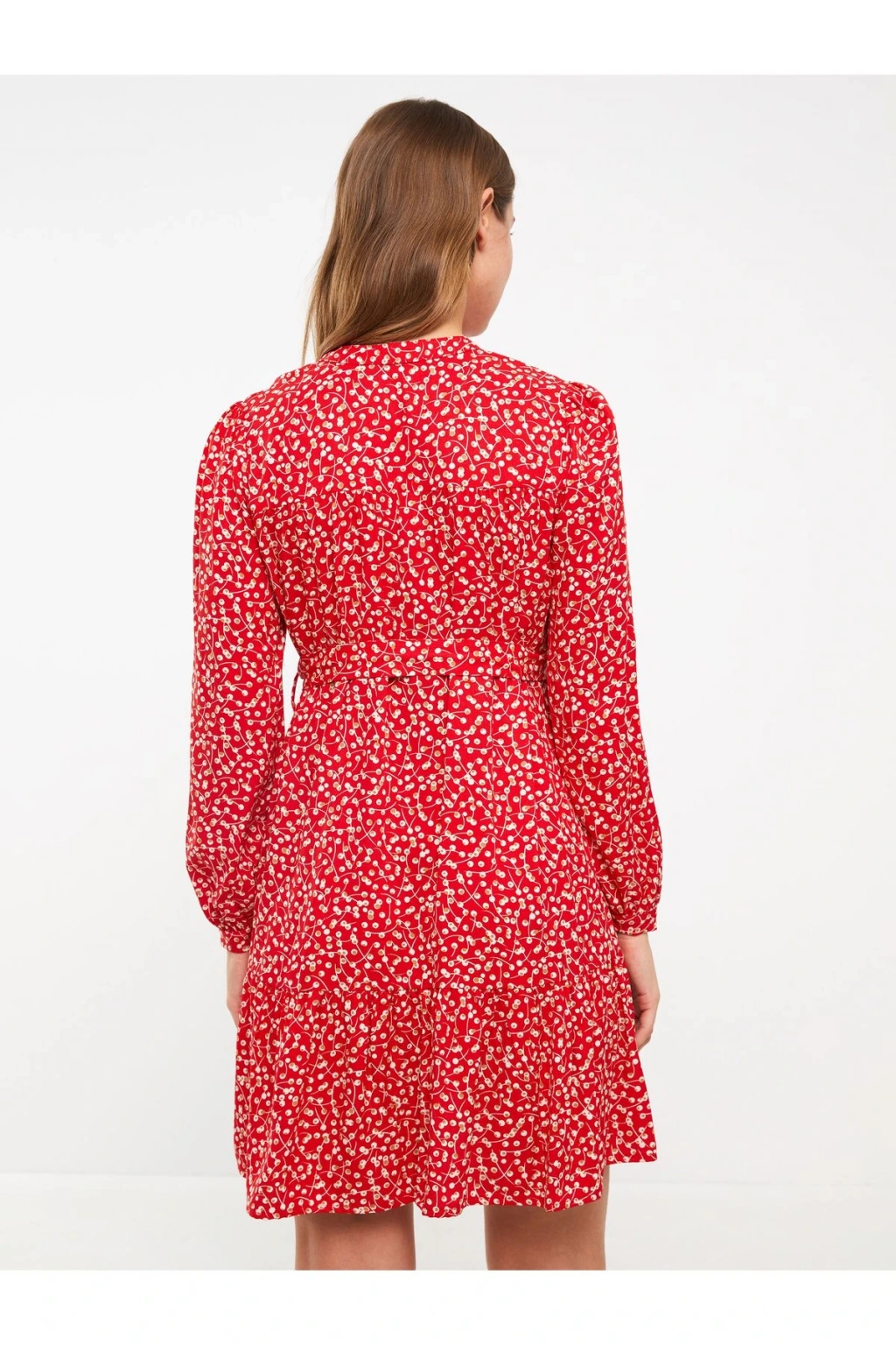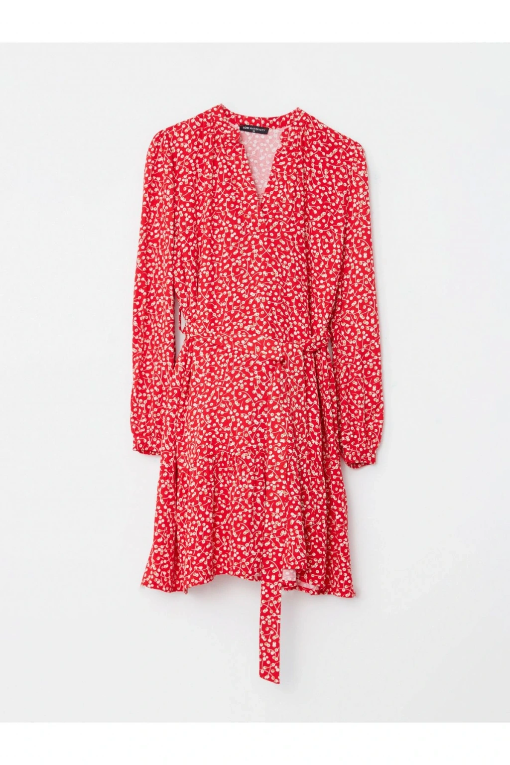 LCWAIKIKI Classic Kirmizi V Yaka Çiçekli Kısa Kollu Viskon Kadın Elbise