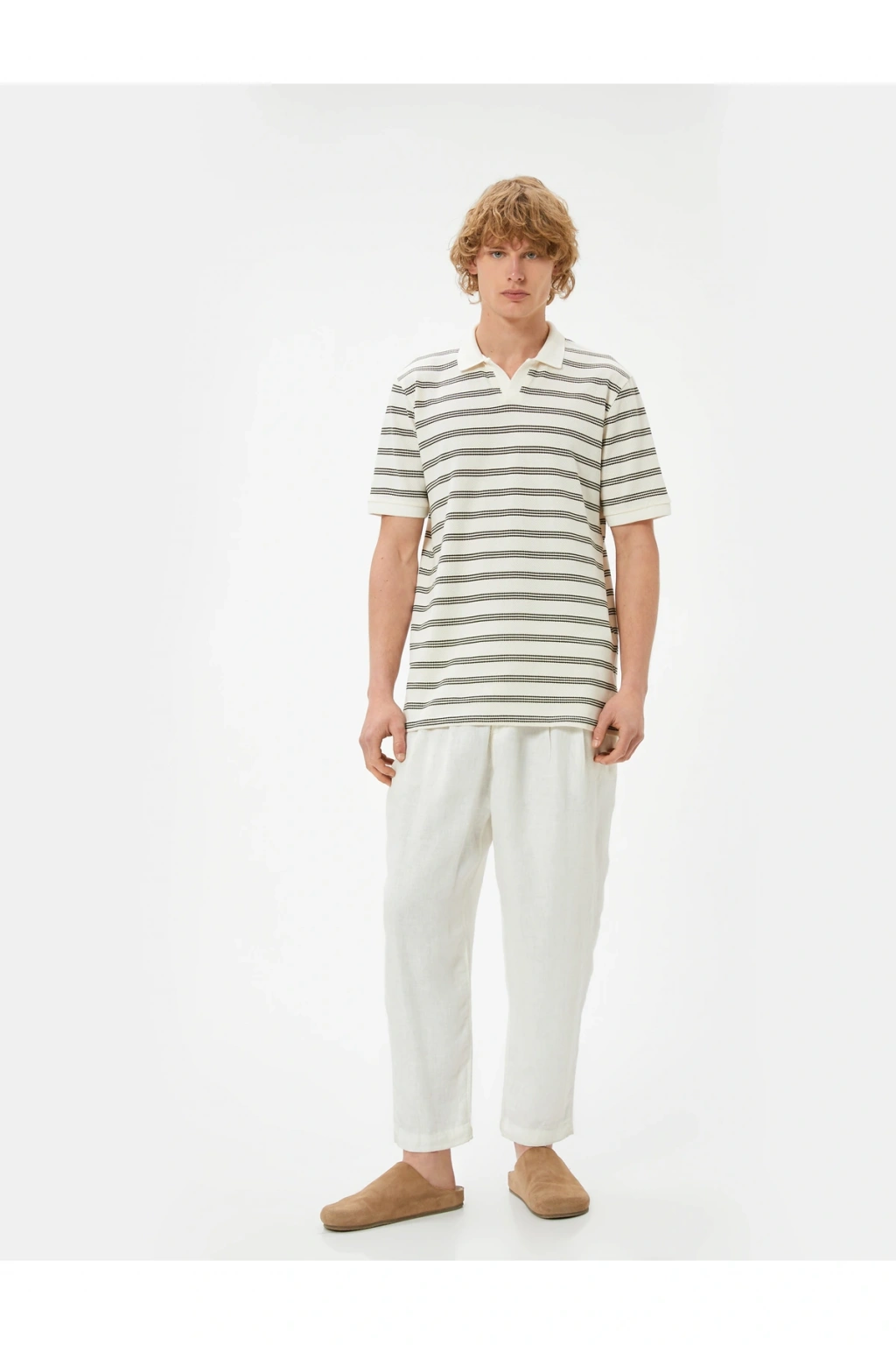 Yakalı Tişört Düğmeli Slim Fit Kısa Kollu
