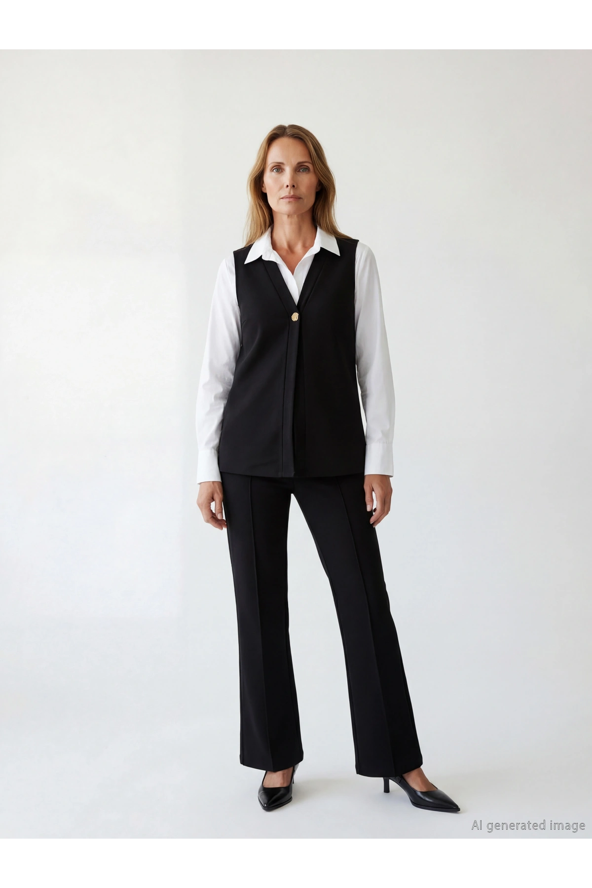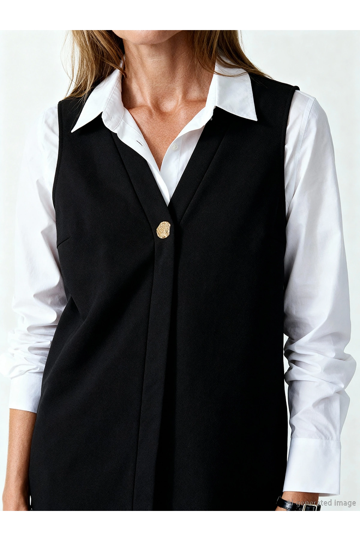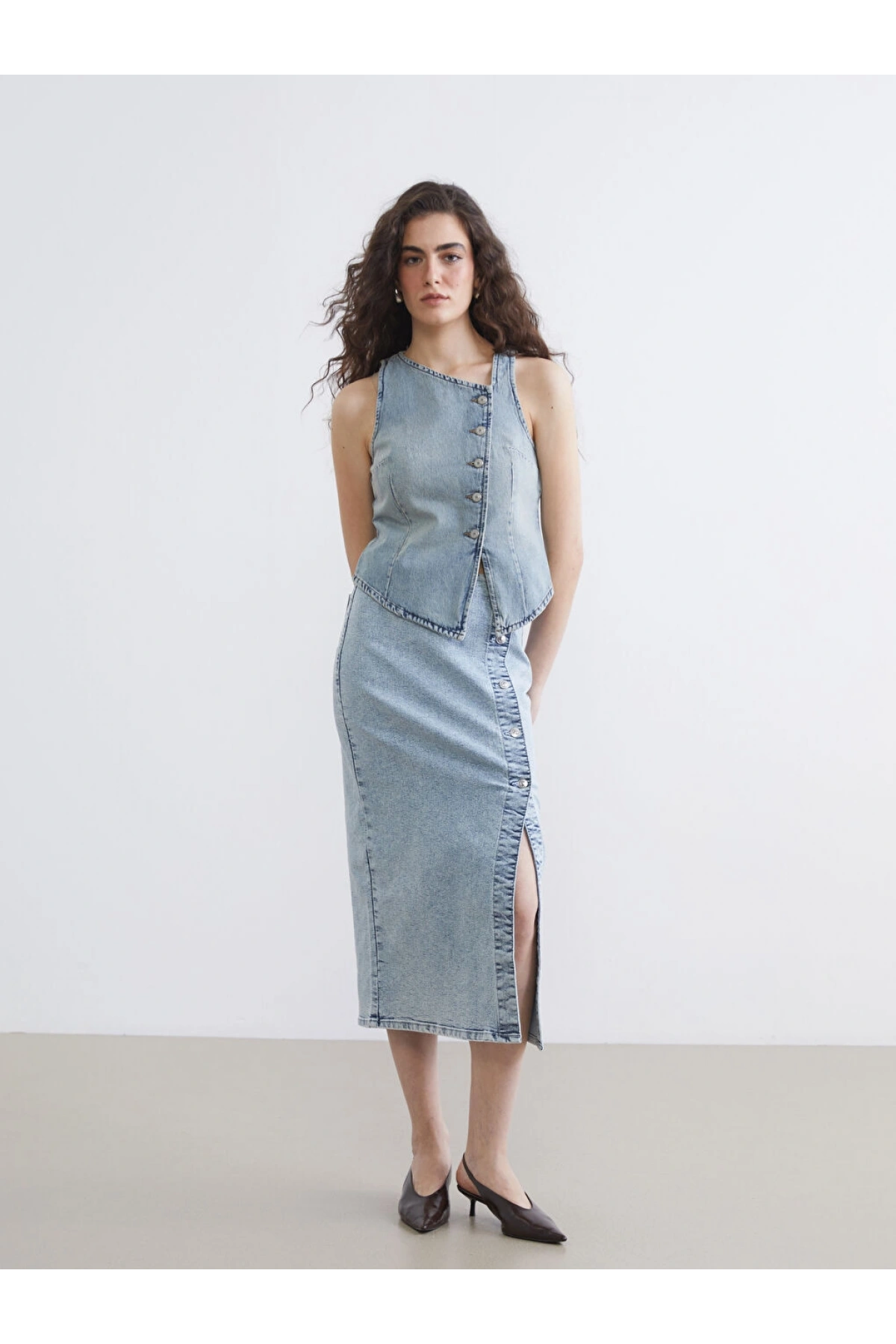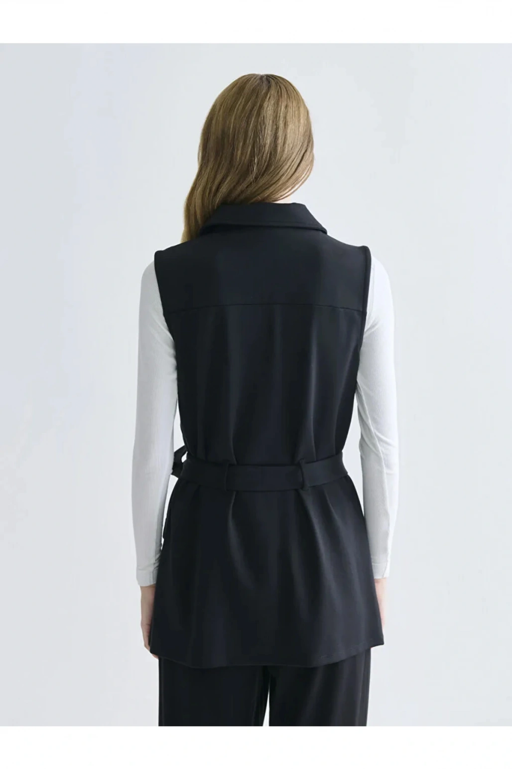 Slim Fit Düğmeli V Yaka Uzun Blazer Yelek