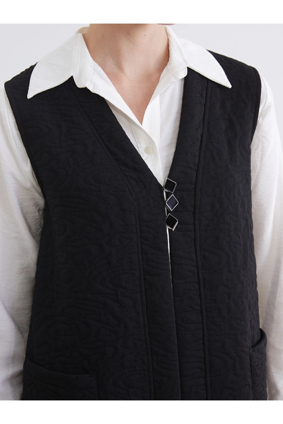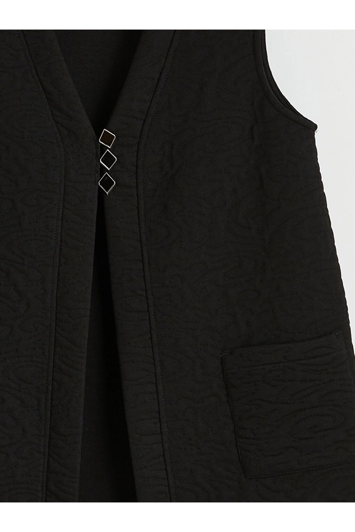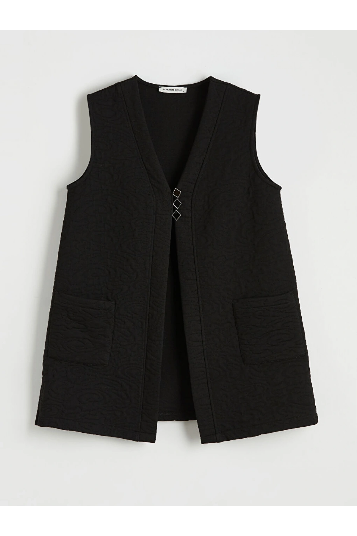 LCW Grace Siyah V Yaka Kendinden Desenli Kadın Yelek