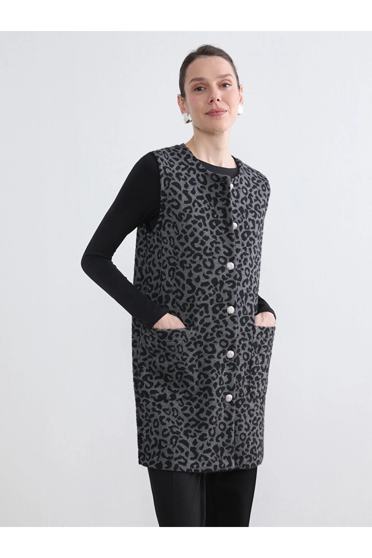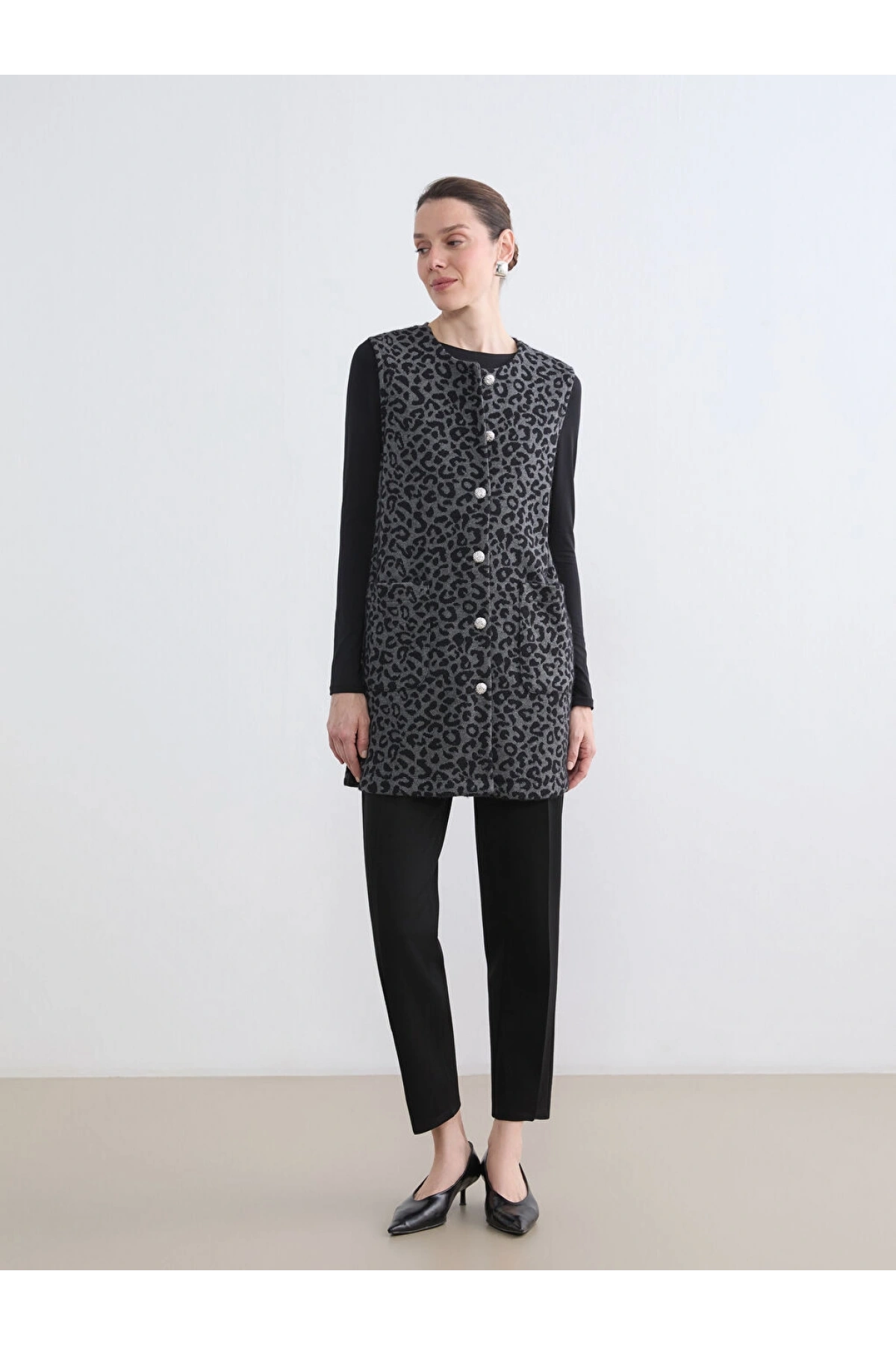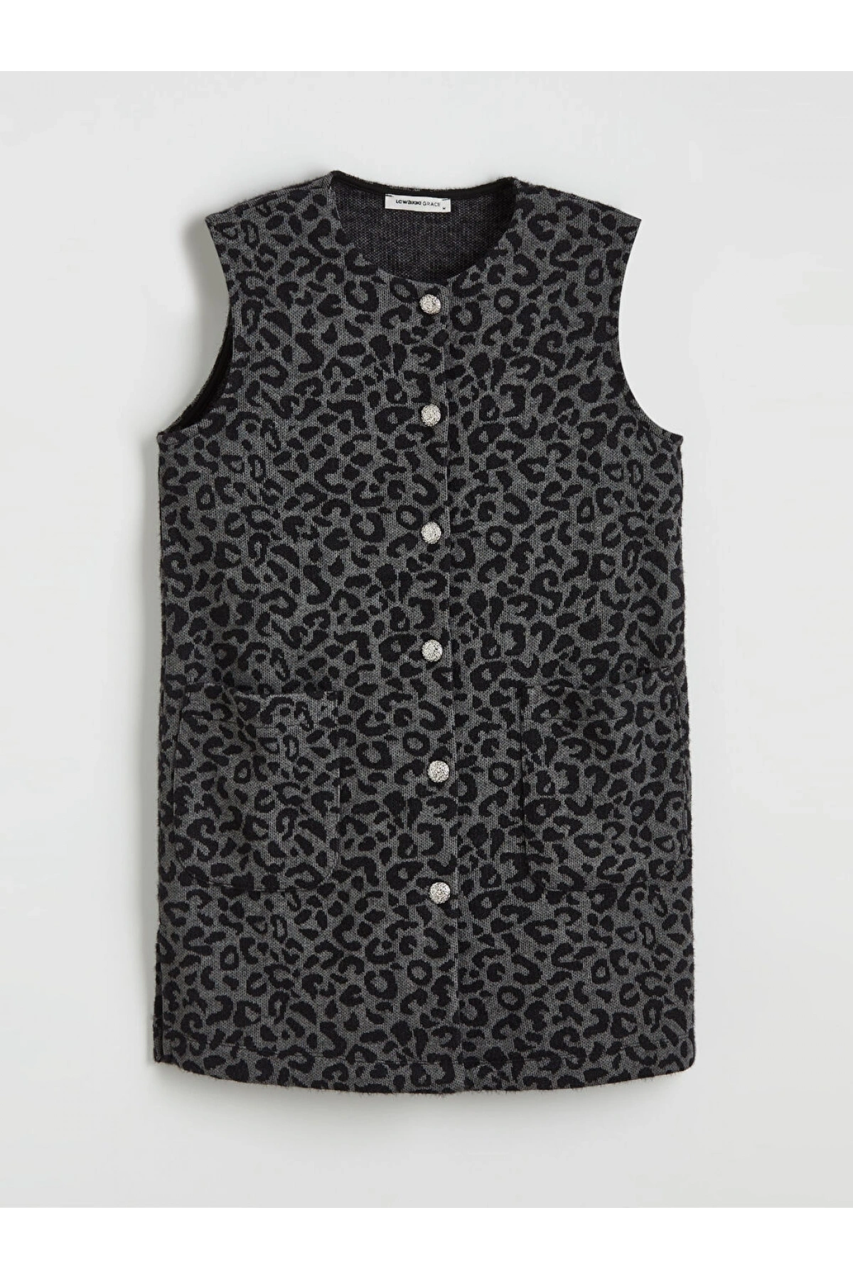 LCW Grace Siyah Bisiklet Yaka Leopar Desenli Kadın Yelek