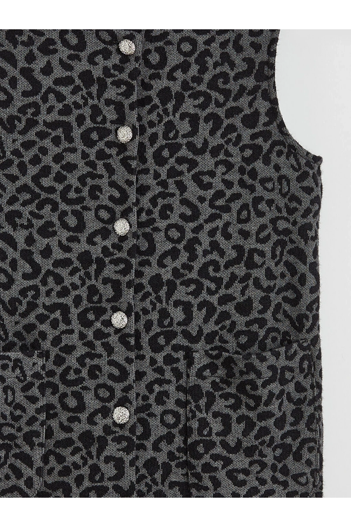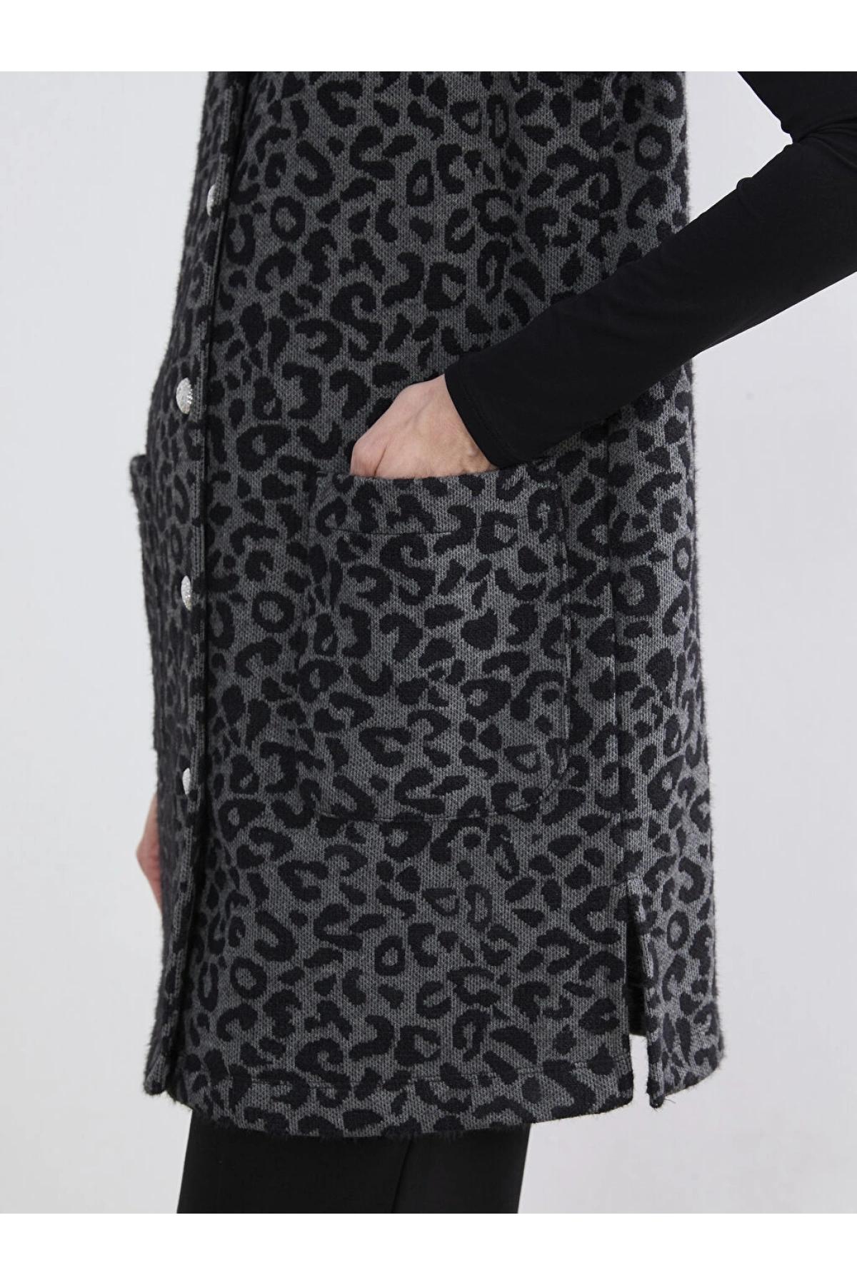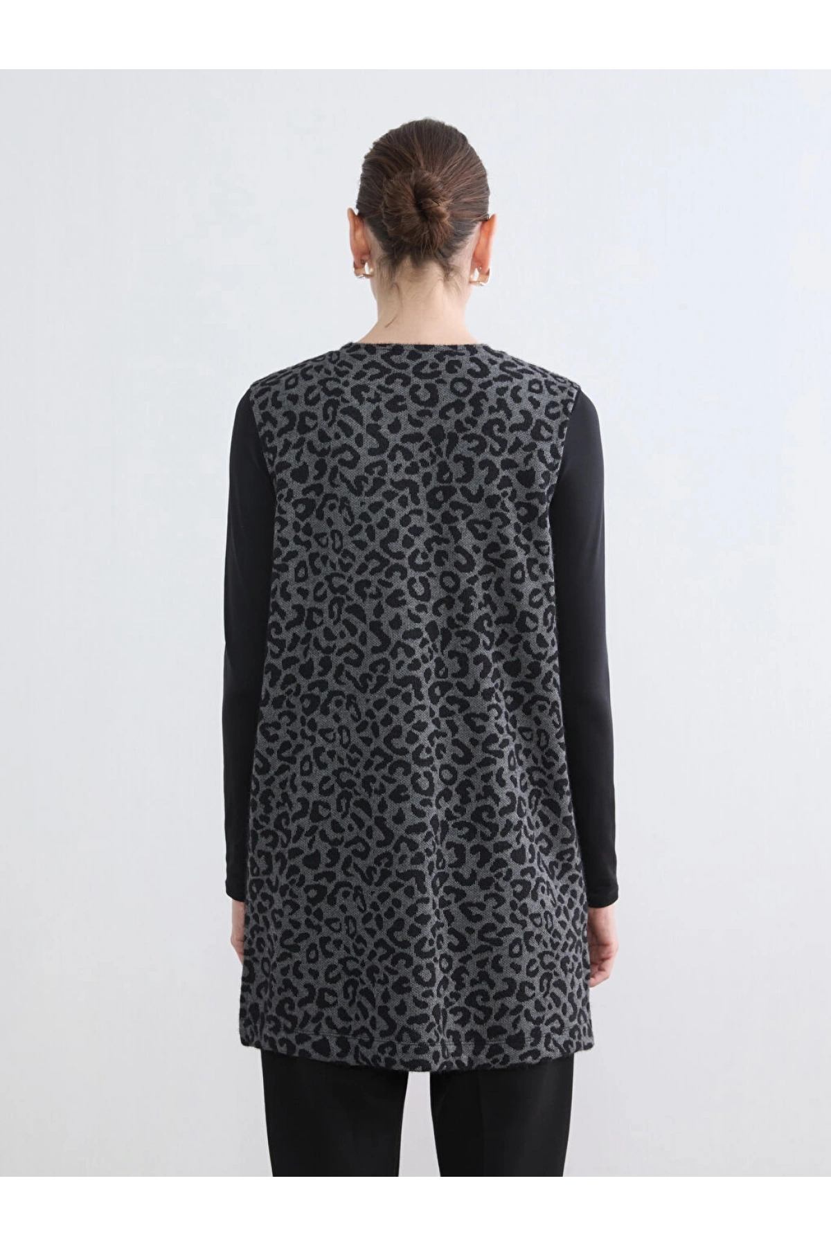 LCW Grace Siyah Bisiklet Yaka Leopar Desenli Kadın Yelek