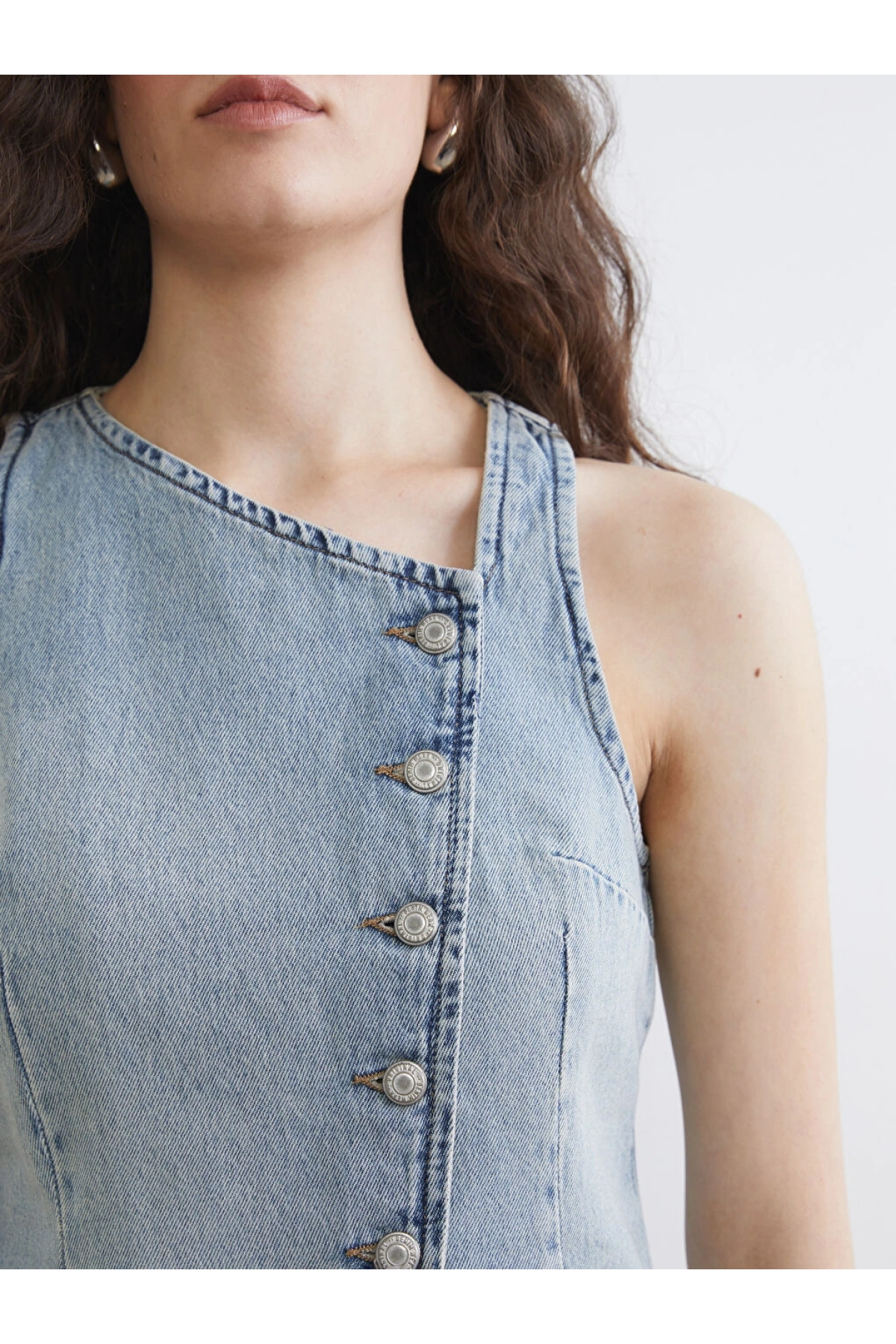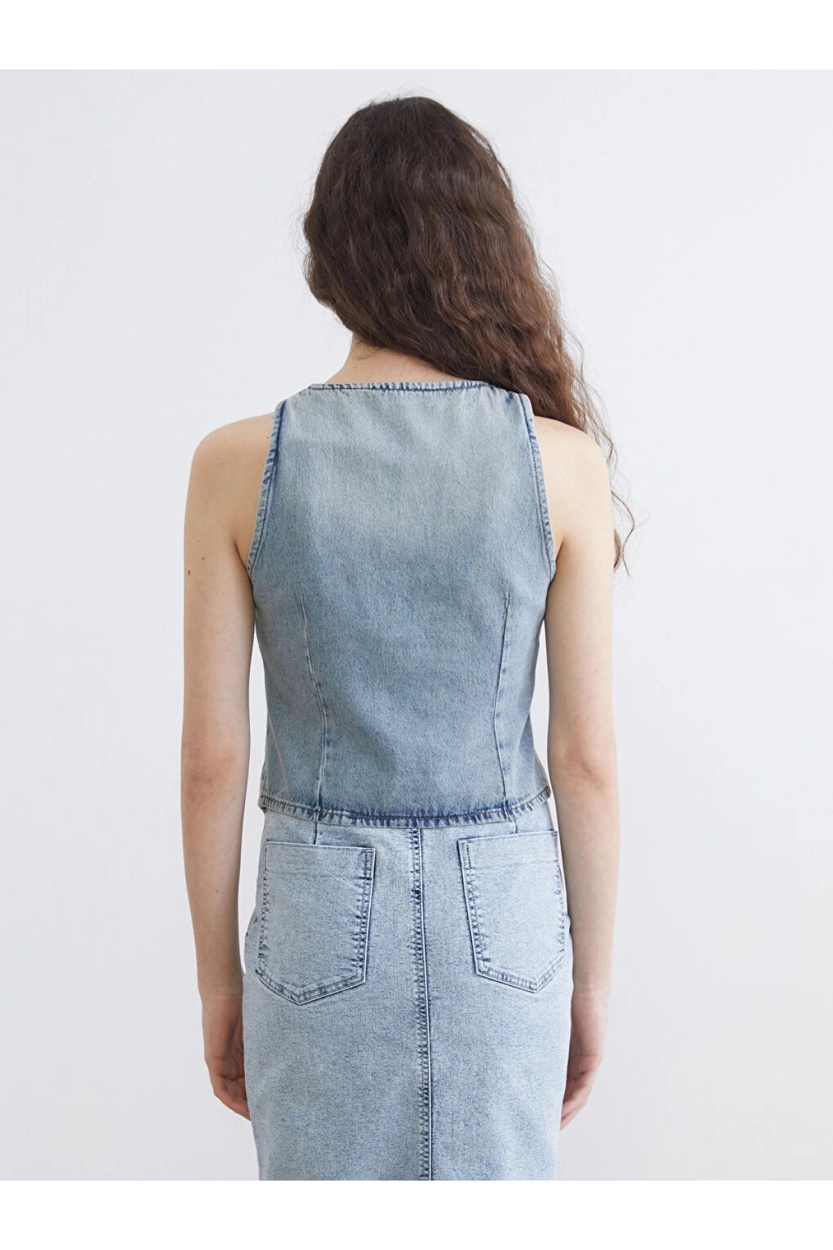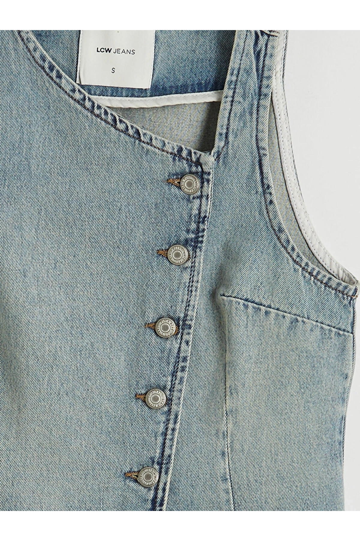 LCW Vision Indigo Kayık Yaka Kadın Jean Yelek