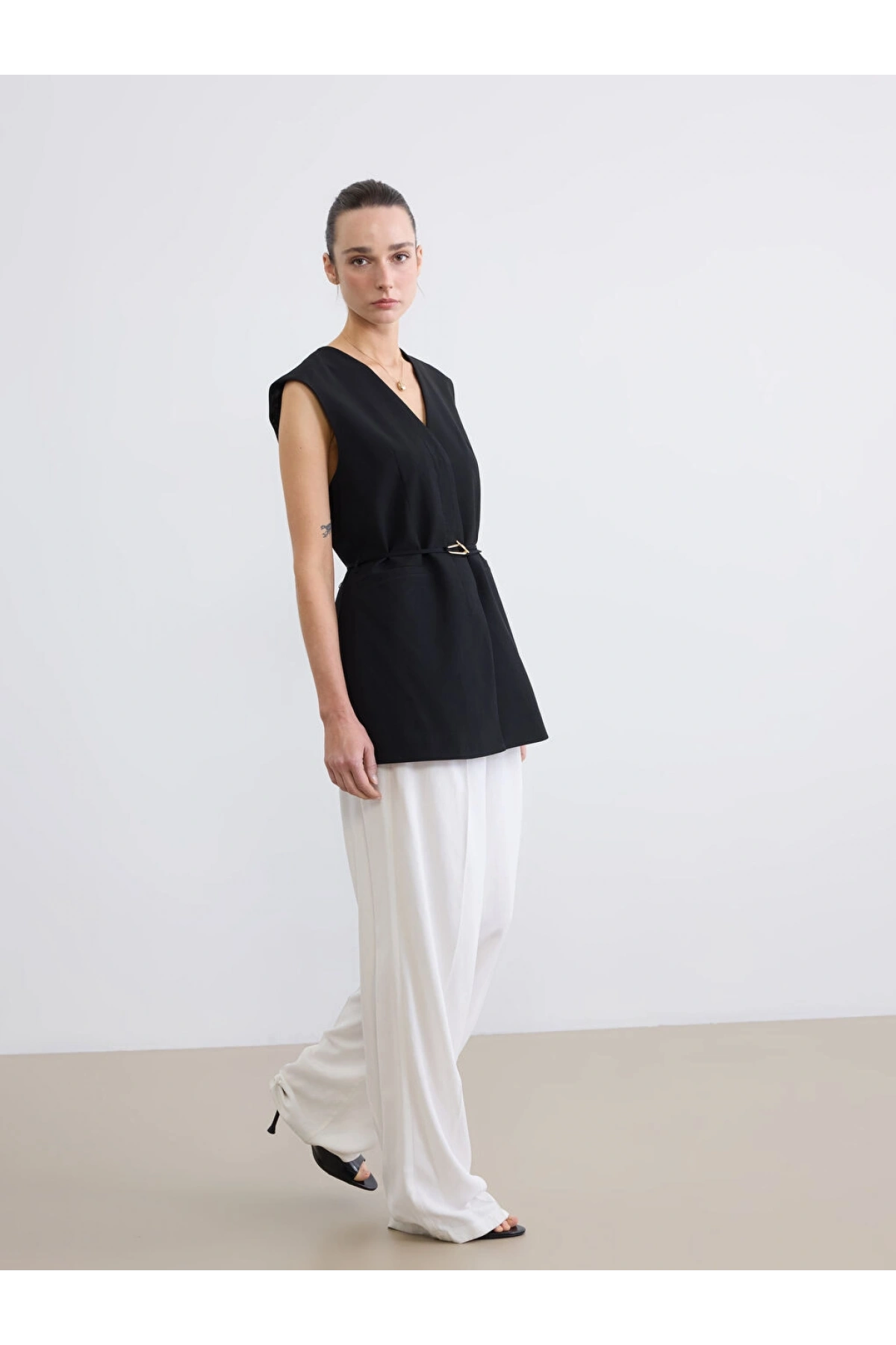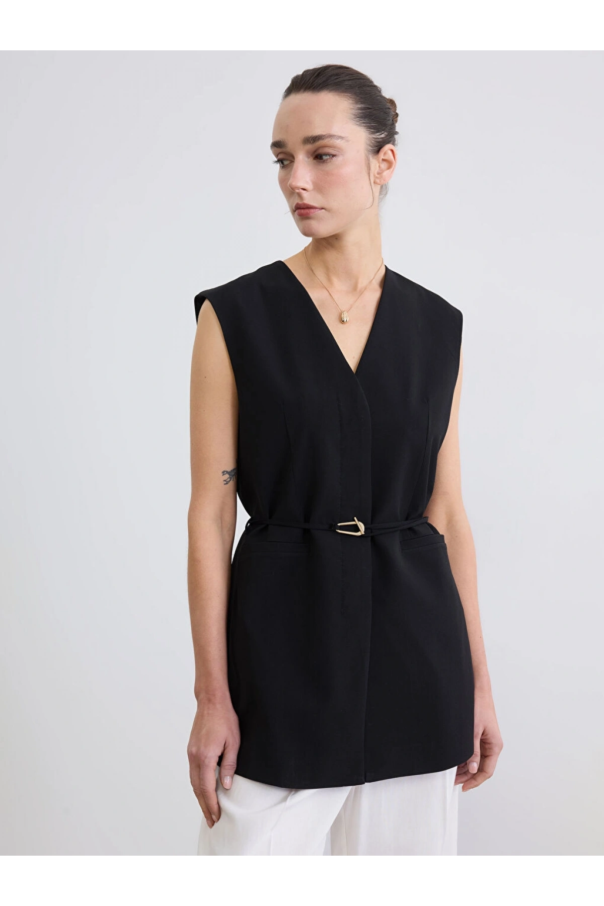 LCW STUDIO Siyah V Yaka Beli Kemerli Kadın Yelek
