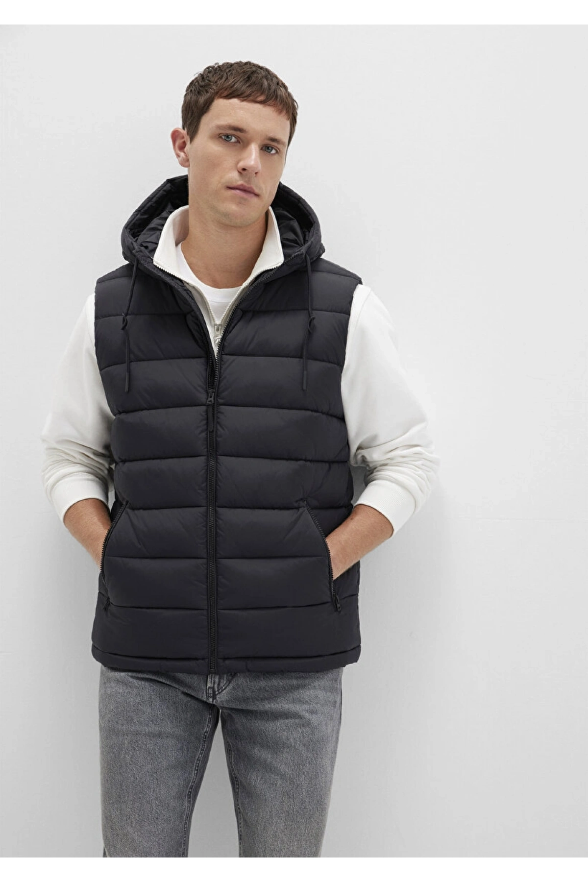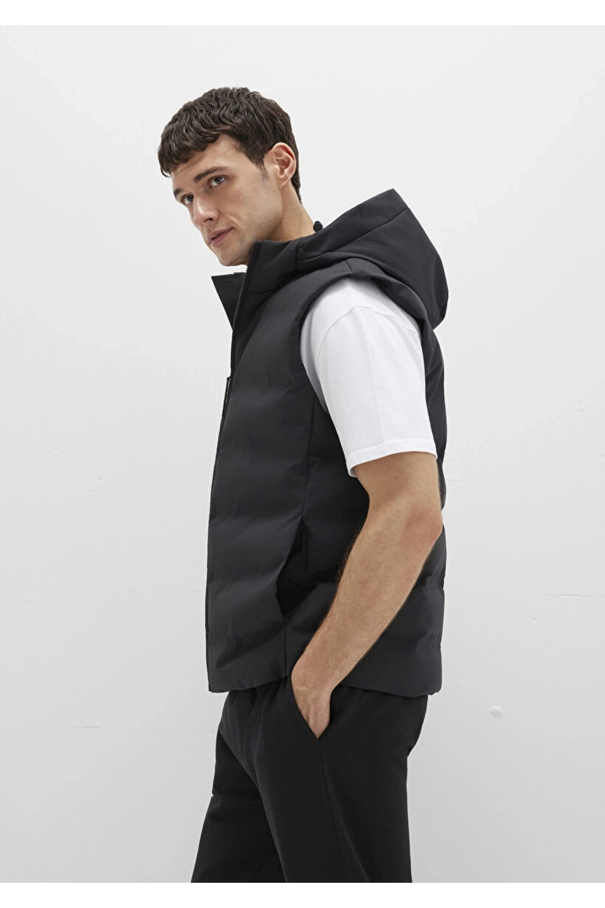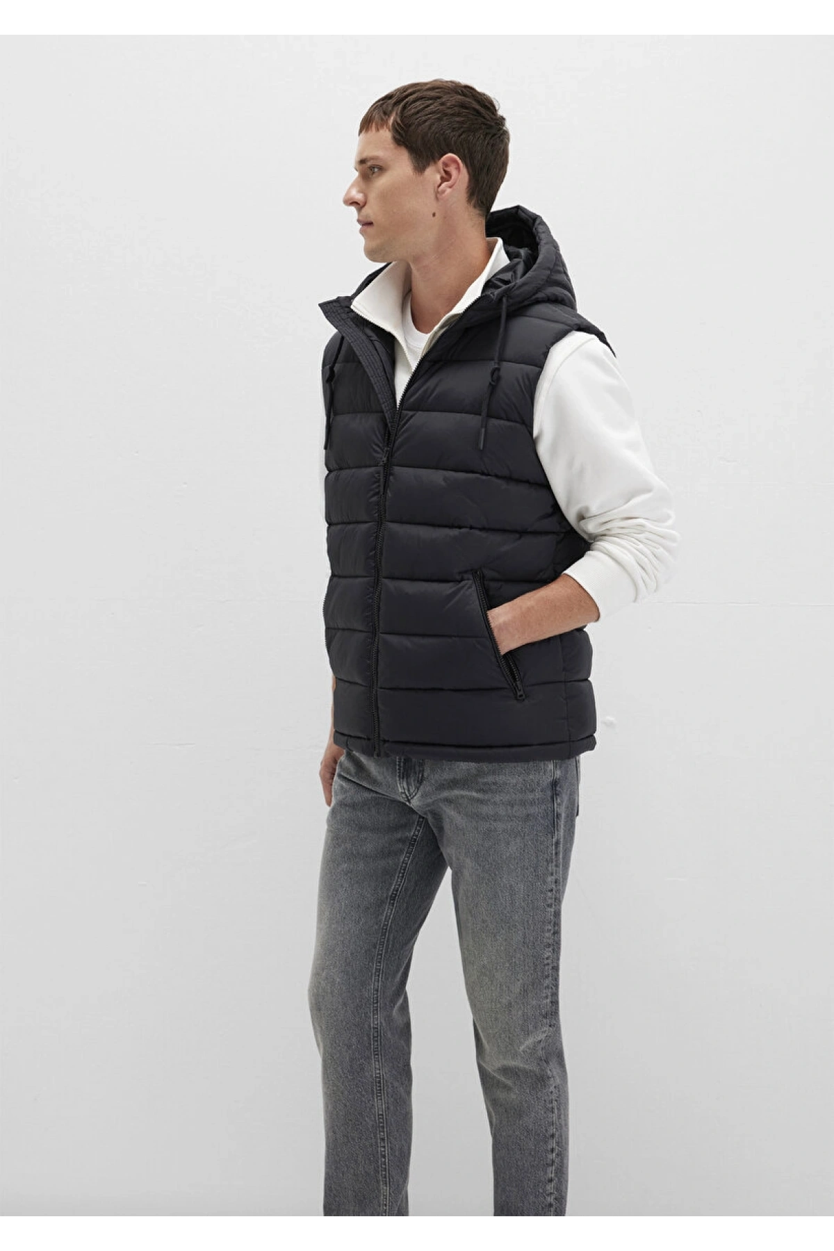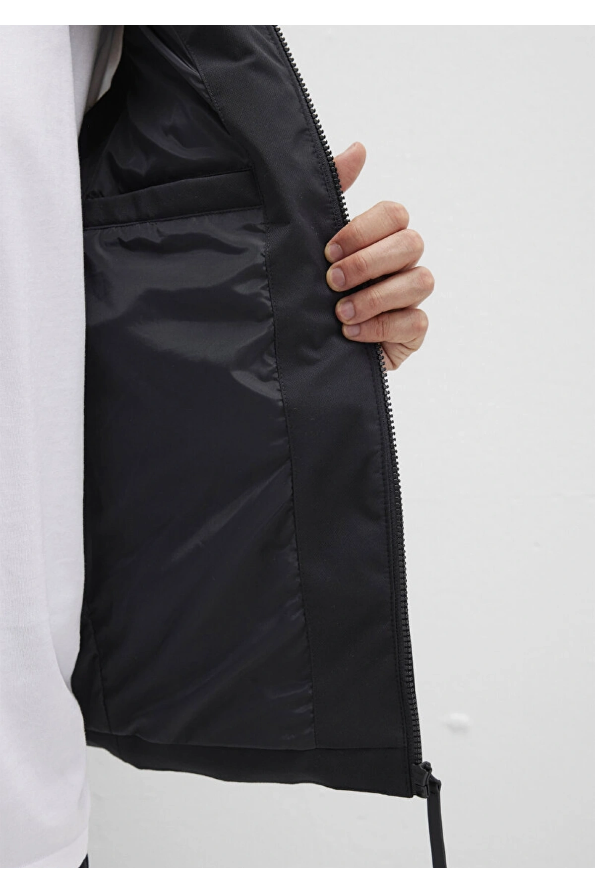Kolsuz Kapüşonlu Fermuarlı Cep Detaylı Yelek