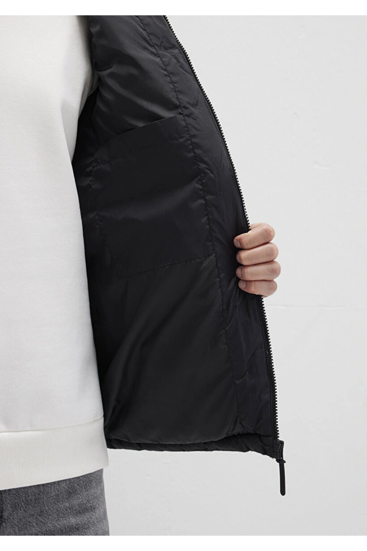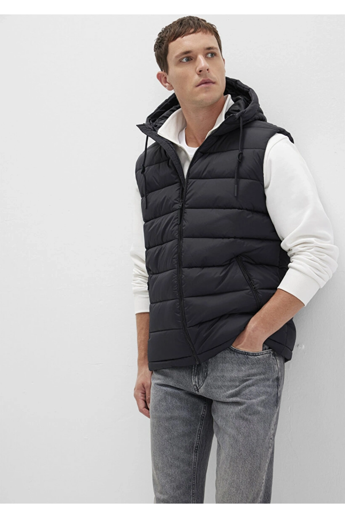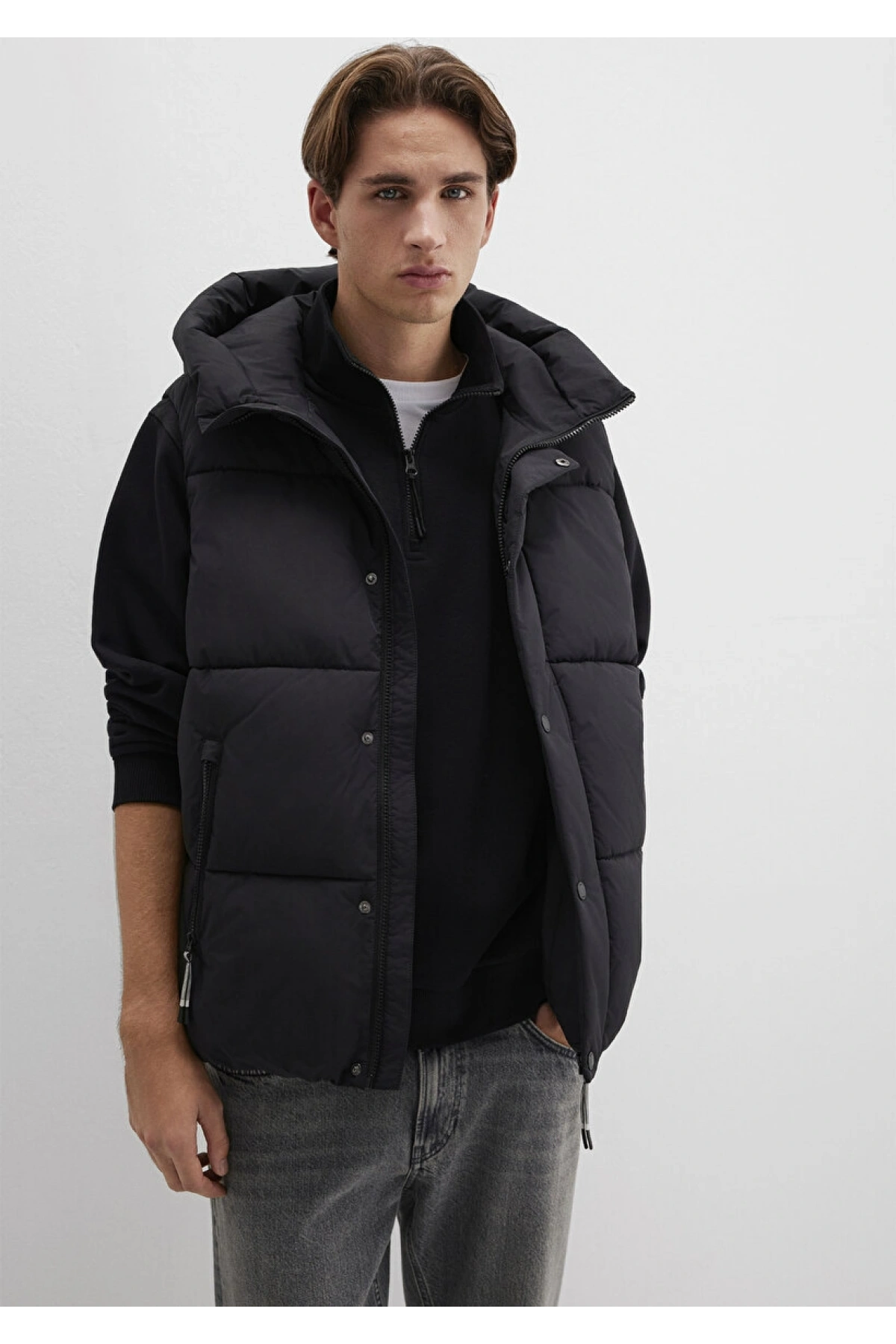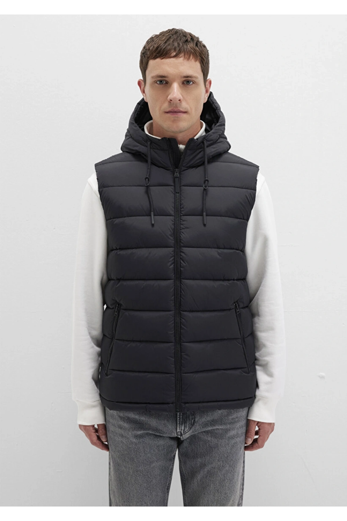 Kolsuz Kapüşonlu Fermuarlı Cep Detaylı Yelek