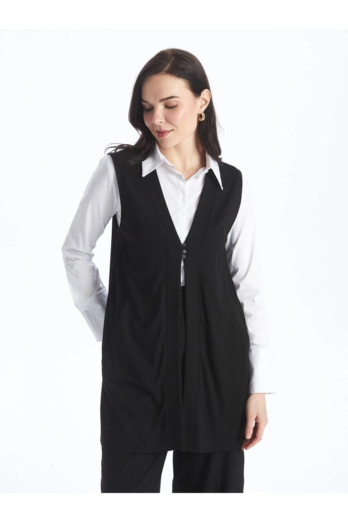LCW Grace Siyah V Yaka Kadın Yelek
