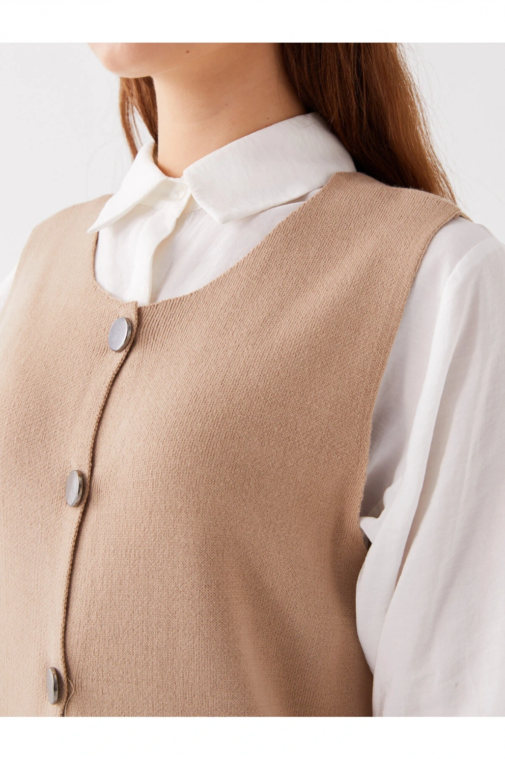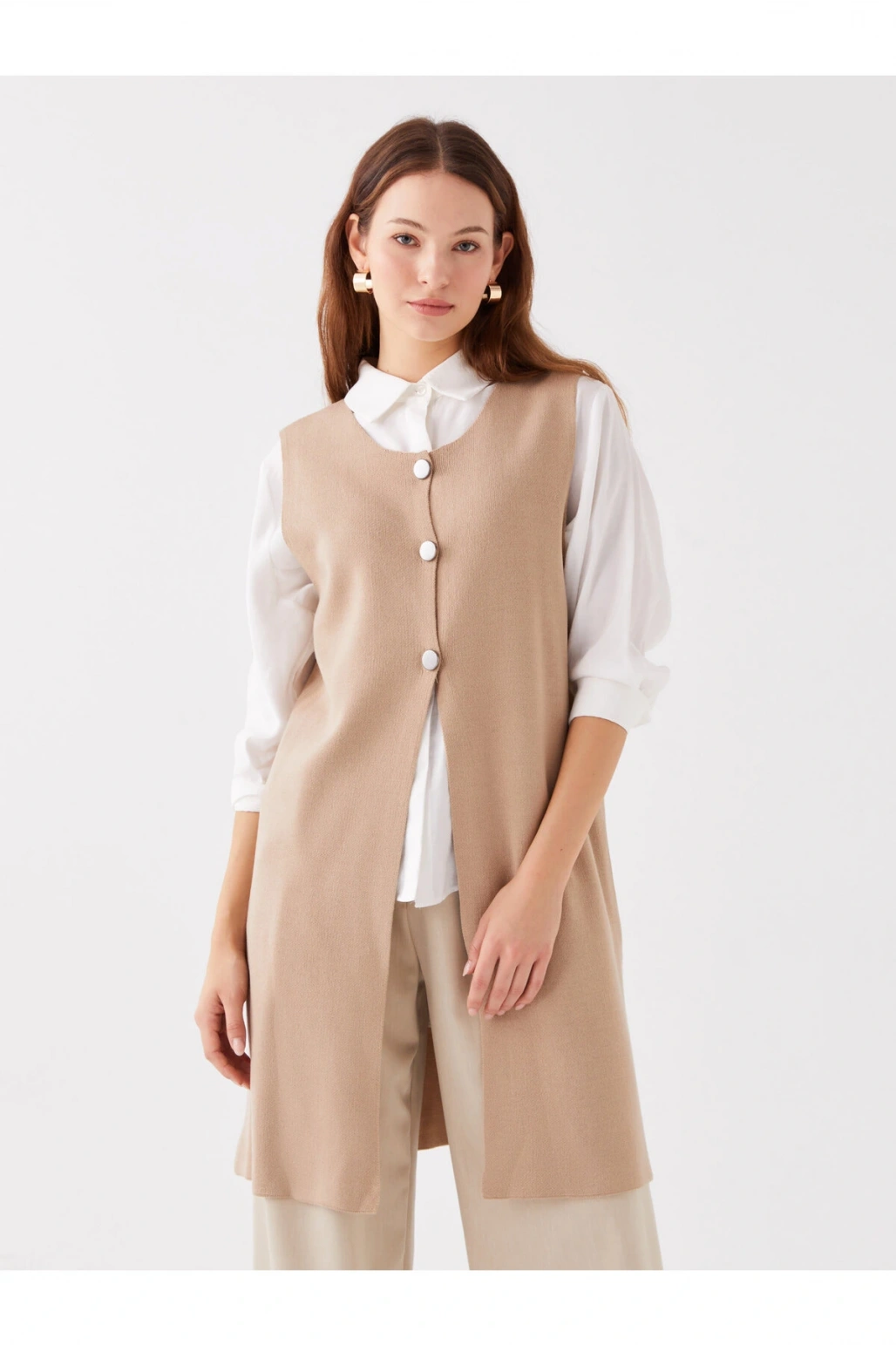 Bisiklet Yaka Düz Kadın Triko Yelek