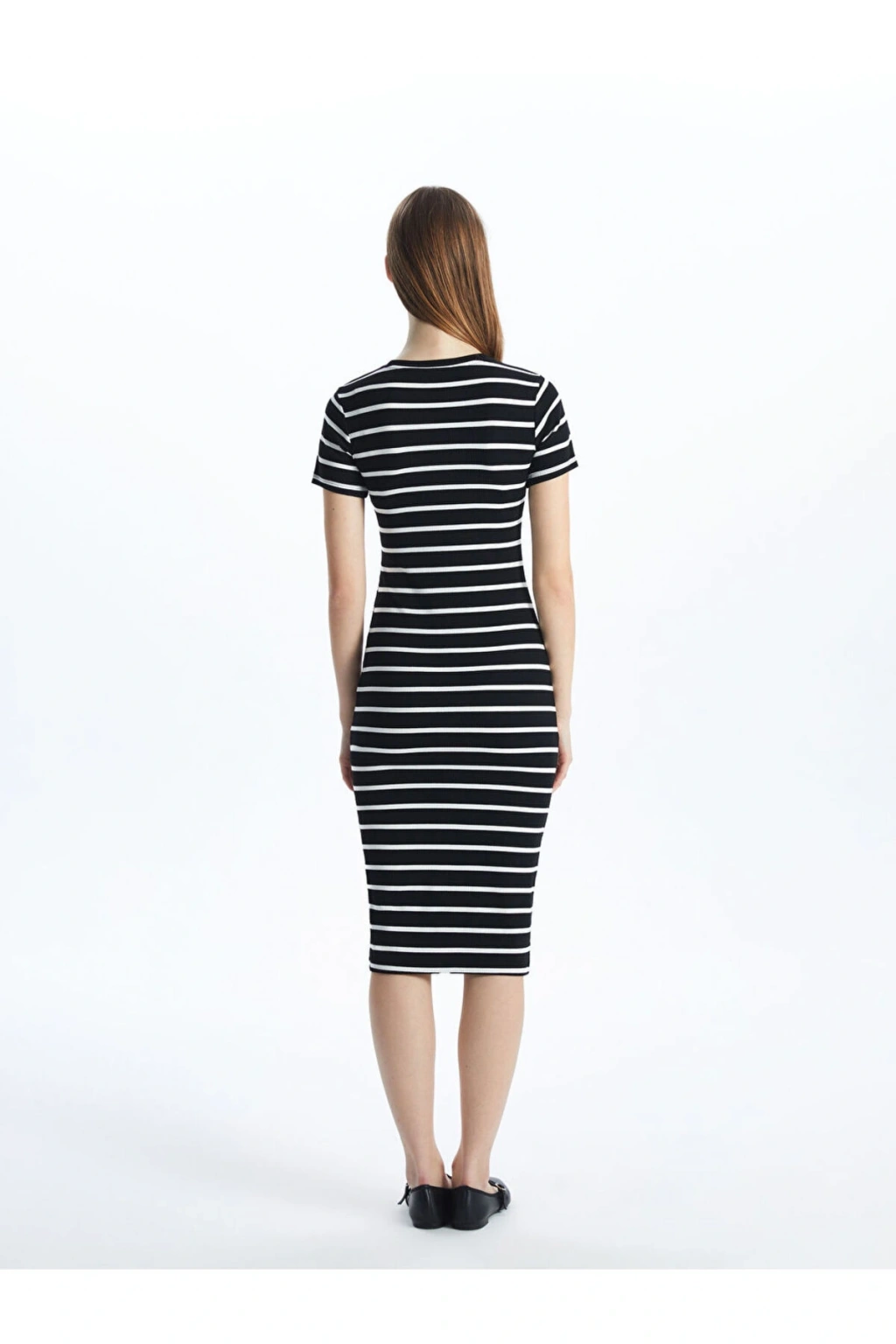 LC Waikiki Yeni Sezon Bisiklet Yaka Cizgili Kadin Bodycon Elbise - S5GP52Z8 Ürün Açıklaması Kadın bodycon elbise, kaşkorse kumaştan üretilmiş olup, ekstra dar kalıbı ile vücuda mükemmel bir şekilde uyum sağlar.; Yumuşak ve esnek kumaşı, rahat bir giyim deneyimi sunarken, çizgili desen modern ve şık bir görünüm kazandırır.; Manken Bilgisi Göğüs: 82 cm Bel: 58 cm Basen: 89 cm Boy: 178 cm Manken S beden ürün giyiyor.; Ürün İçeriği ve Özellikleri Ürün İçeriği: Ana Kumaş: %2 ELASTAN %35 VİSKOZ %63 Polyester Ürün Özellikleri: Satıcı: LC Waikiki Marka: XSIDE Ürün Tipi: Elbise Cinsiyet: Kadın Kalıp: Süper Skinny & Ekstra Dar Kumaş: Kaşkorse Siluet: Bodycon Astar Detay: Astarsız Uzunluk: Midi Yaka: Bisiklet Yaka Kol Boyu: Kısa Kollu Desen: Çizgili