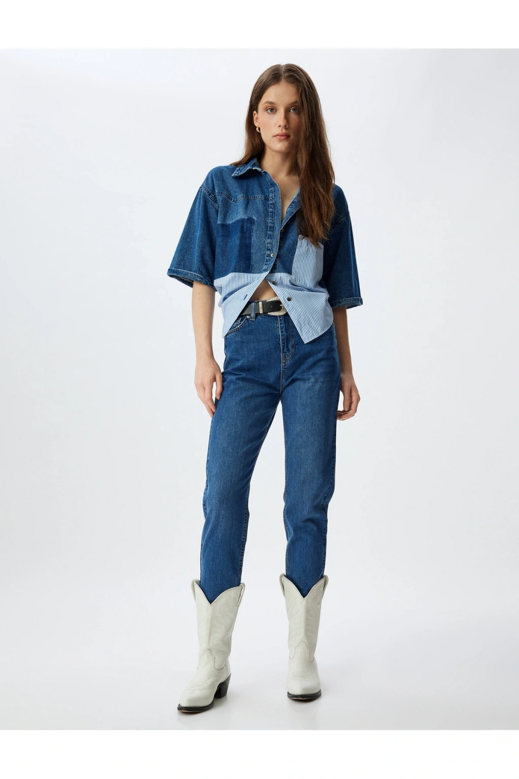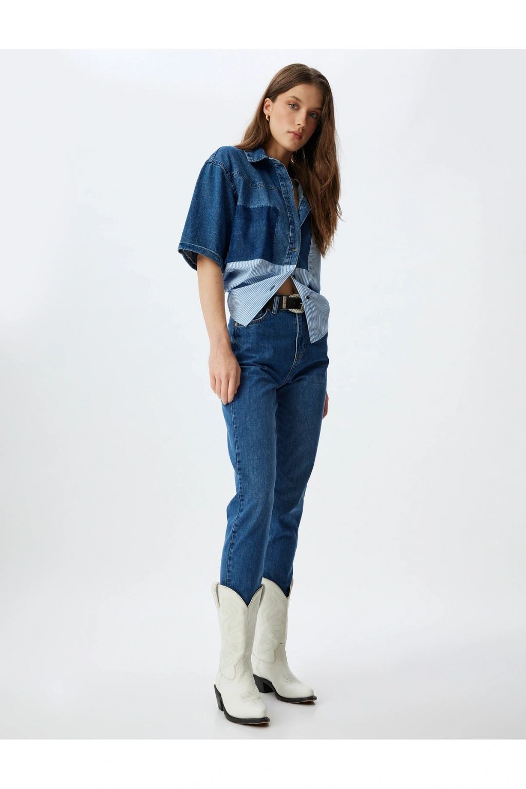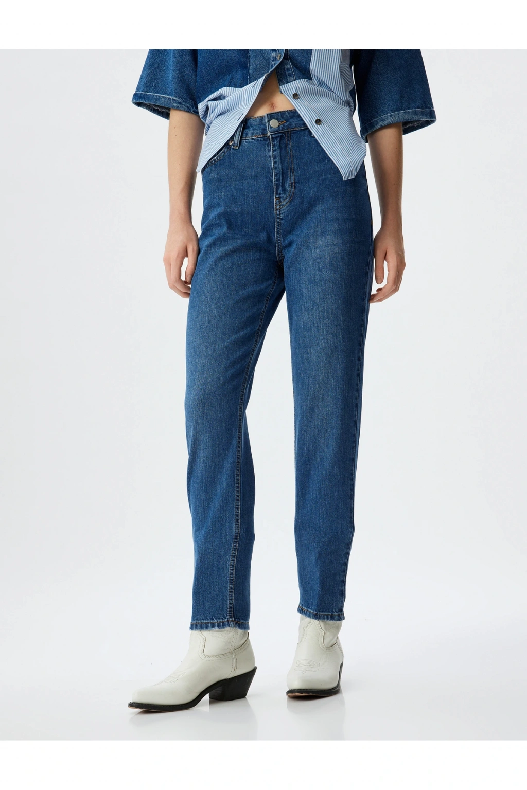 Yüksek bel, düğmeli, düz paça, cepli, pamuklu kot pantolon - Slim Straight Fit Jeans |Günlük giyimde klasiklerden vazgeçmeyenlerin tercihi Slim Straight Jeans'den yana oluyor.; Indigo Ürün Kullanım Bilgisi : Ürünümüzde kullanılan indigo boya, kullanım esnasında giysilerinize bir miktar renk verebilir.; İlk yıkama tersten ve tek başına, sonraki yıkamalarda ise yine tersten ve renkli çamaşırlar ile birlikte yıkamanızı tavsiye ederiz.; | Model Boy: 179 | Model Kalça: 89 | Model Üst: 61 | Model Bel: S | Model Göğüs: 82 | Model Jean: 27/32