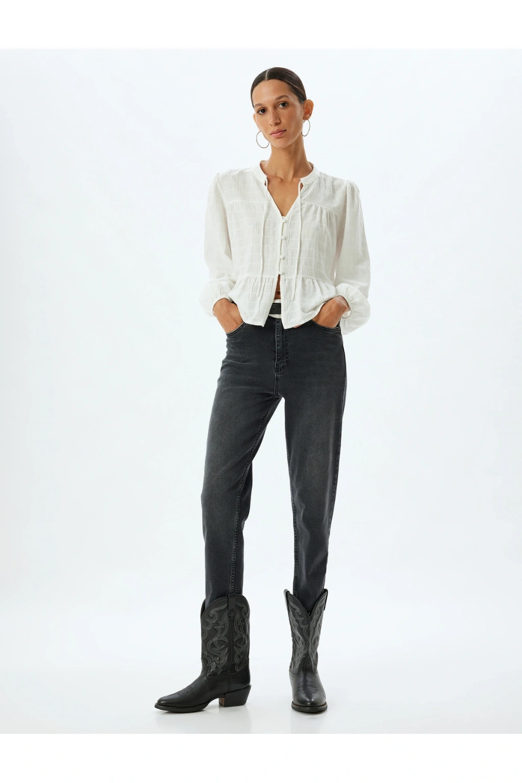 Normal kesim, yüksek bel, düz paça kot pantolon - Slim Fit Jeans | |Günlük giyimde klasiklerden vazgeçmeyenlerin tercihi Slim Jeans'den yana oluyor.; Respect Life - Yaşama Saygı | Bu ürün, doğal kaynaklarımızı korumak adına daha az su kullanılarak yıkanmıştır.; Koton'un insana ve topluma değer katma, gelecek nesillere daha yaşanılabilir bir dünya bırakma duyarlılığıyla hazırladığı koleksiyonu keşfedin.; | Model Boy: 179 | Model Kalça: 90 | Model Üst: 60 | Model Bel: S | Model Göğüs: 85 | Model Jean: 27/32